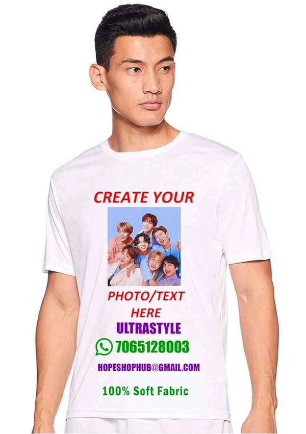Photo Wala T-shirtमनचाहा डिजाइन अपना फोटो। अपना बच्चों का या परिवार का फोटो छपा है। यह मोबाइल नंबर या कोई भी कंपनी का लोगो। किसी भी प्रकार का लोगो छपाई शर्ट पर।